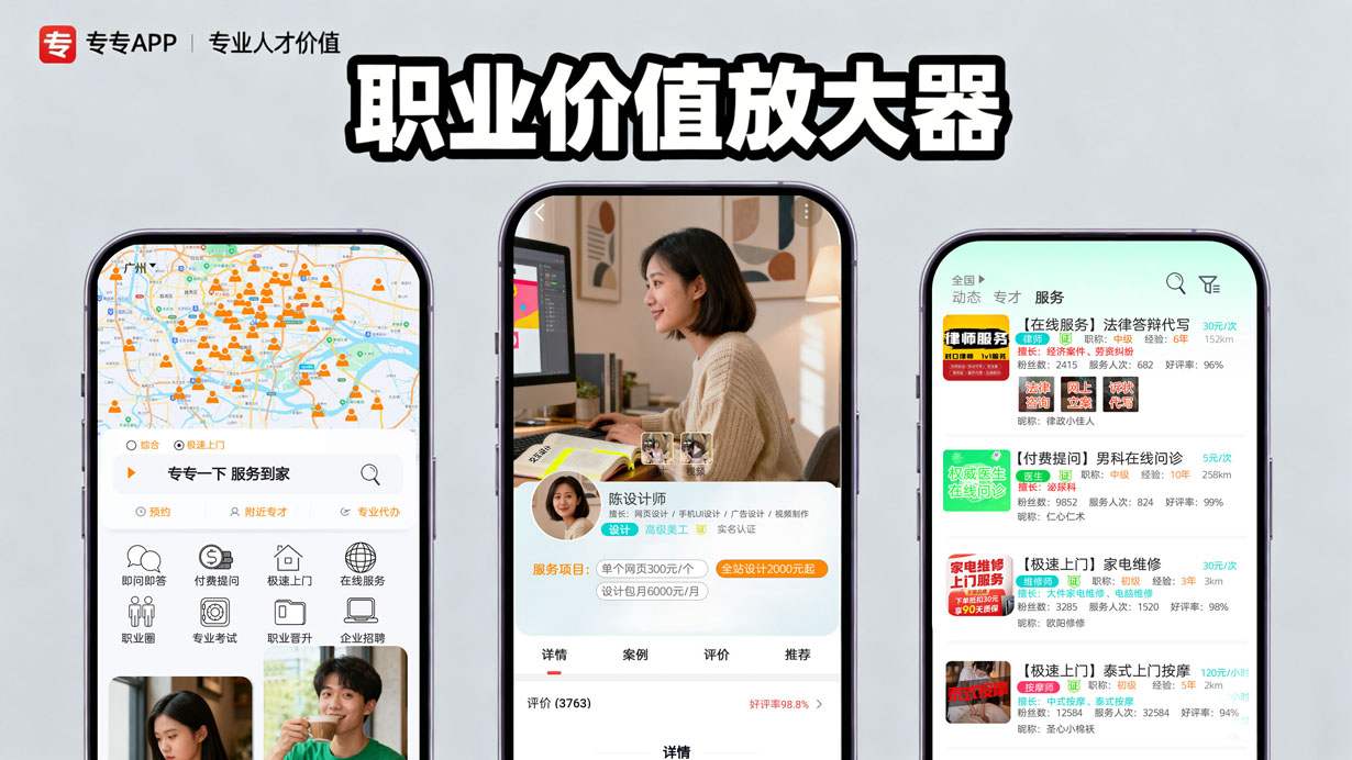 传统的服务性商品交易平台无法满足人们对服务提供者全方位了解的需求,也无法建立即时的双向沟通渠道。专专,以专业社交为切入点,为人们提供专业服务领域的一站式全流程解决方案。在“专业壁垒”与“需求焦虑”并存的当下,找个靠谱的家庭医生要托关系,资深设计师的方案难触达普通业主,而不少技术大牛的绝活却只能困于圈层——专专APP正以职业社交为切口,用人才共享打破这种信息孤岛。