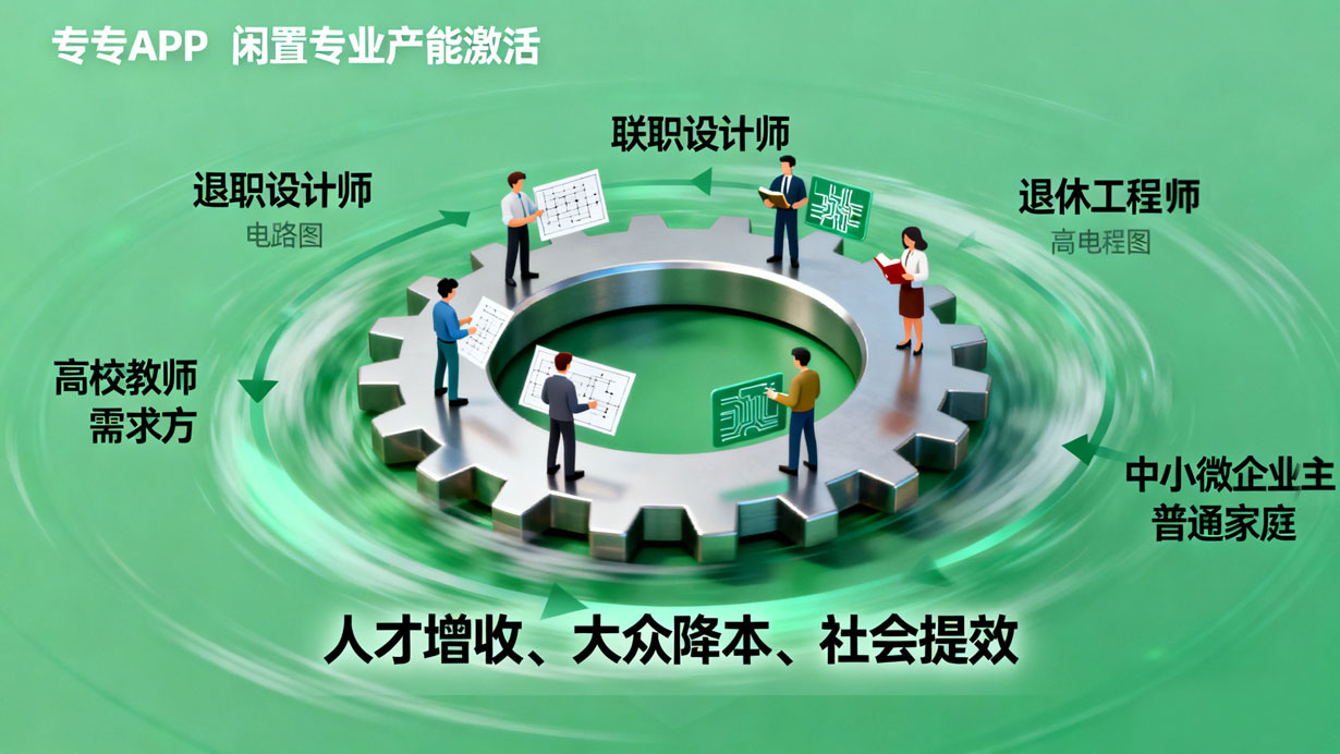 专专通过职业社交建立的信任机制,激活了大量“闲置专业产能”:兼职设计师的周末时间、退休工程师的技术经验、高校教师的专业知识,都能转化为服务社会的生产力。这种“不求所有但求所用”的共享模式,既为灵活就业人群提供了规范化平台,又降低了中小微企业和普通家庭的专业服务门槛,形成“人才增收、大众降本、社会提效”的良性循环。